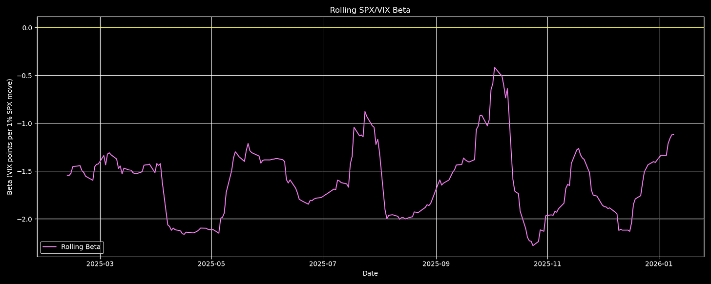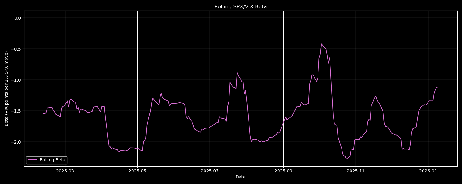 SPX–VIX: relación negativa, como debe ser, pero sin extremos. La volatilidad acompaña, no domina.