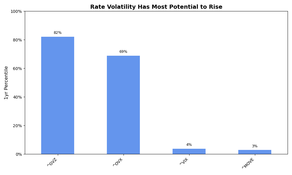 La volatilidad en renta variable y en bonos está en percentiles muy bajos. En cambio, la volatilidad ligada al petróleo y al oro presenta percentiles elevados. El riesgo potencial no está en el índice, está en la estructura financiera que lo rodea.